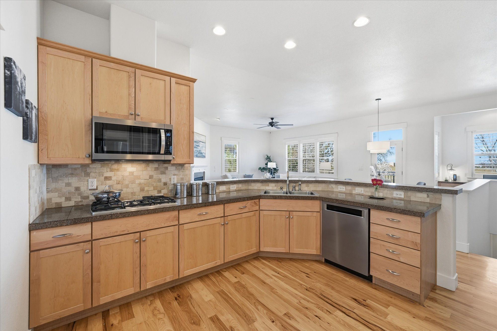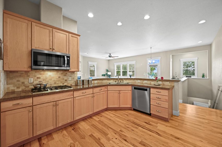 The heart of this home is the wide open kitchen featuring granite tile countertops, 42" maple cabinetry, stainless appliances and brand new double ovens. Large pantry, under cabinet lighting and a gas range cooktop