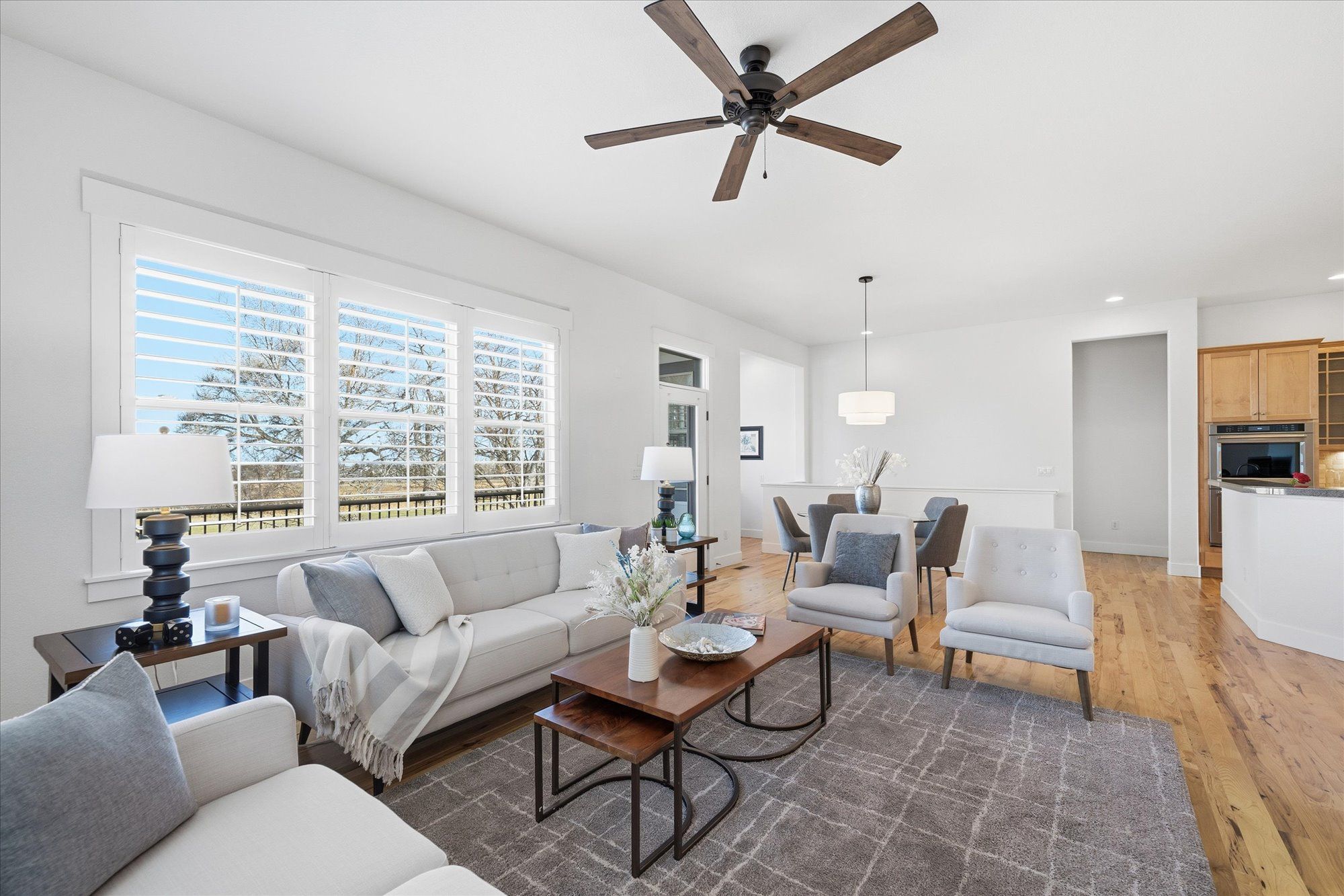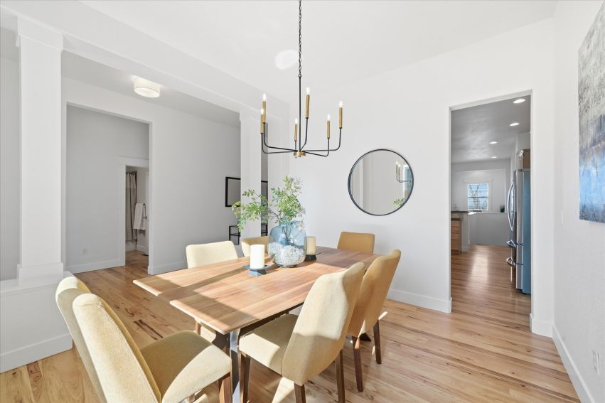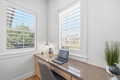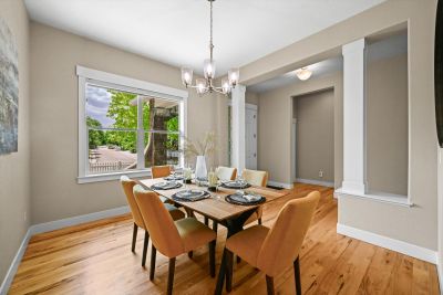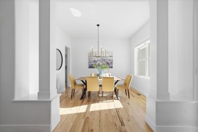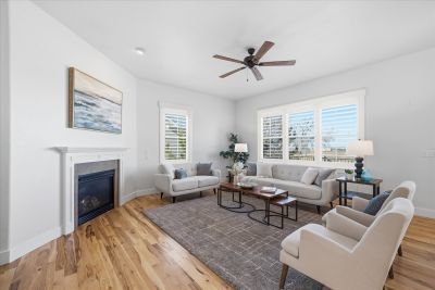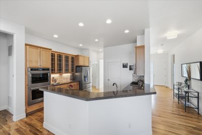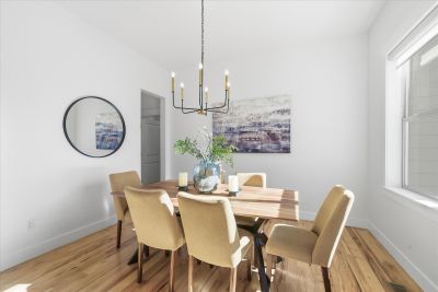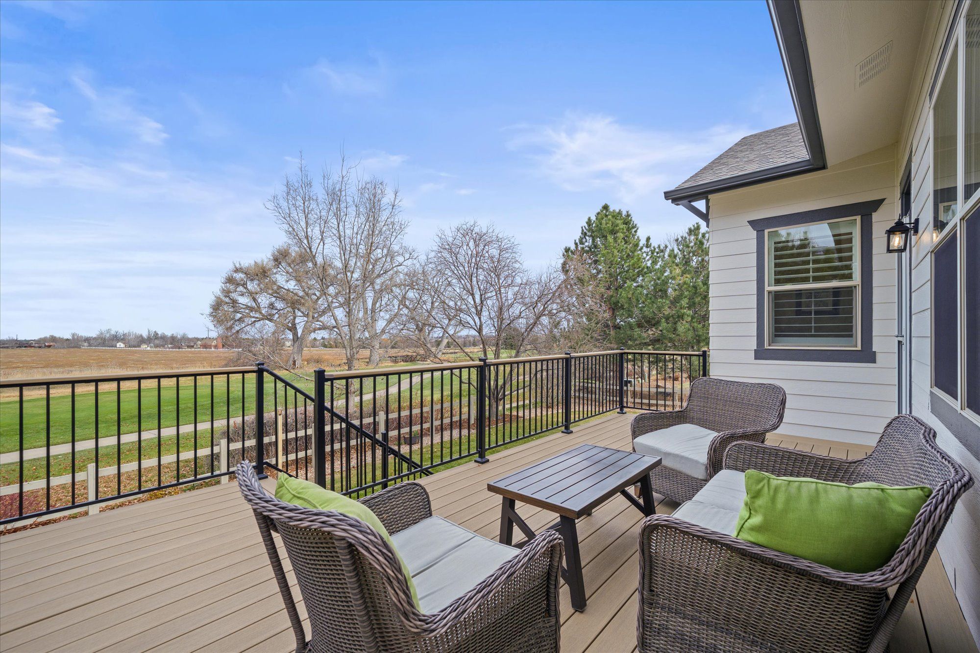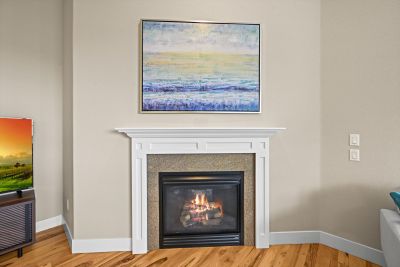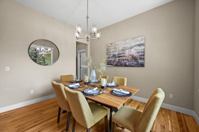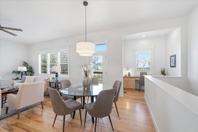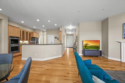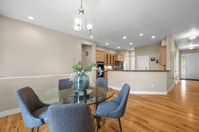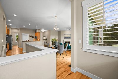 Soaring 10 foot ceilings, no stairs and flooded with wonderful natural light. Plantation shutters, stunning hickory hardwood floors, living room fireplace and a wide open kitchen that overlooks it all. Formal dining room along with casual dining nook that opens to the extensive and brand new composite deck just outside