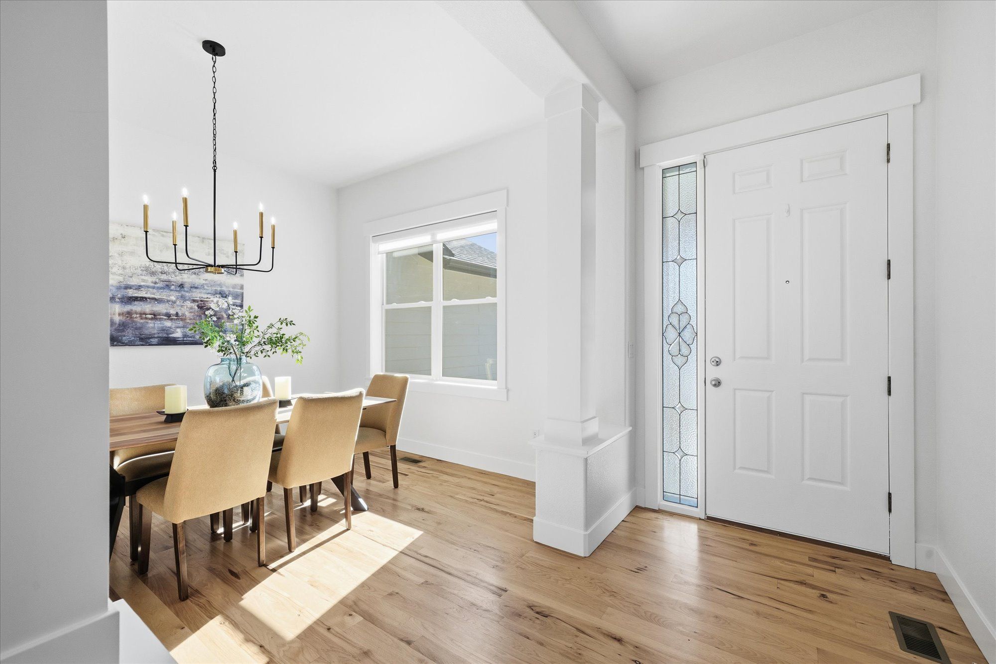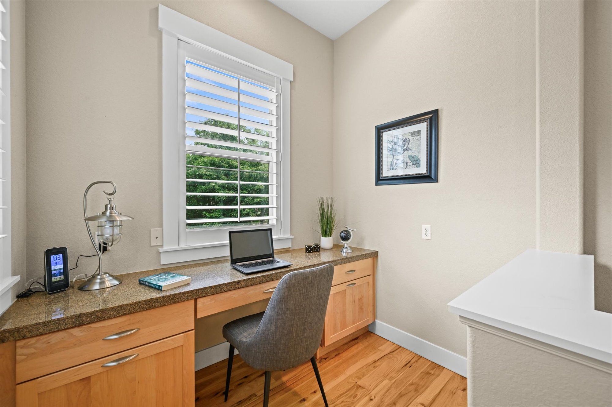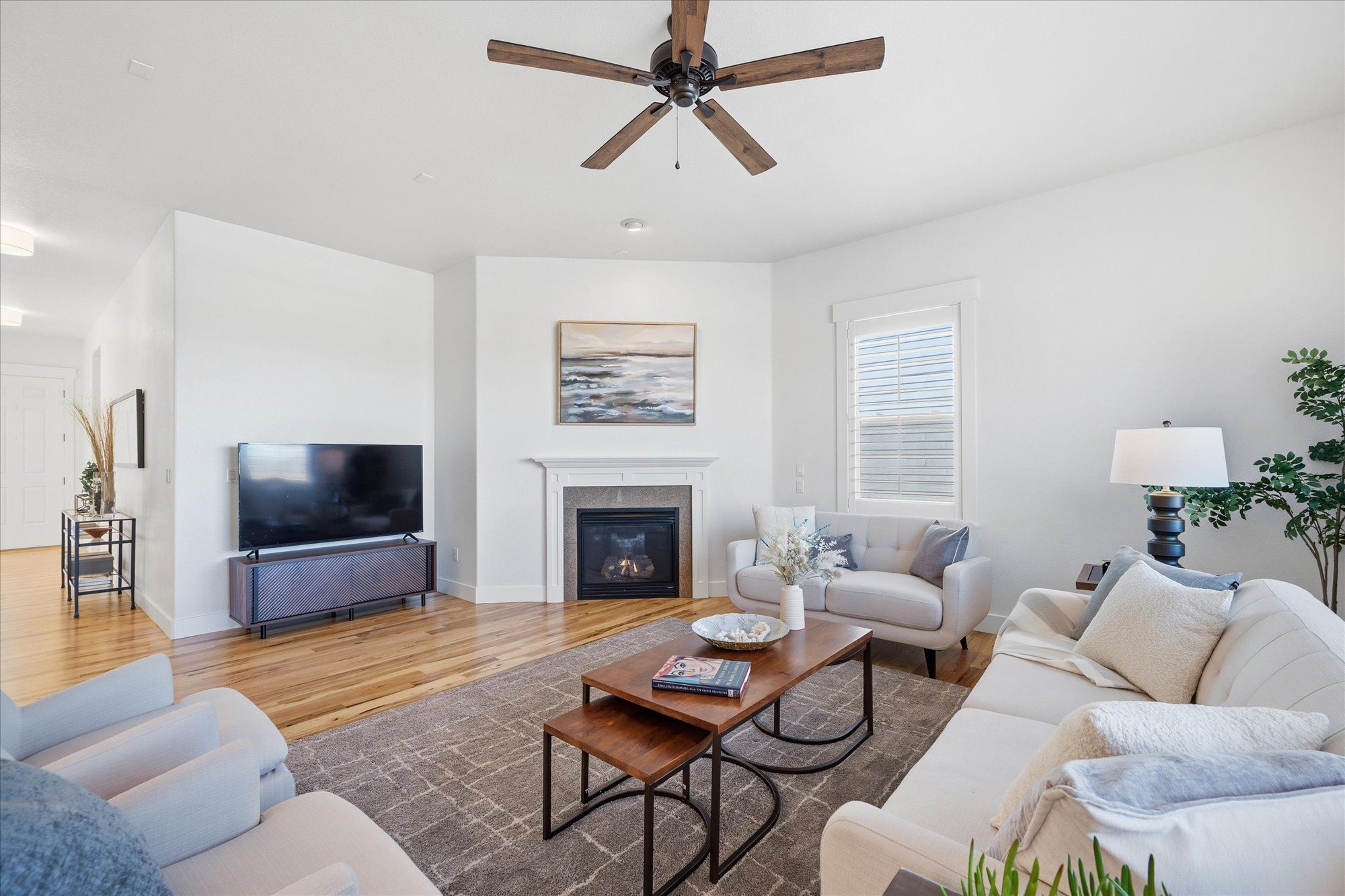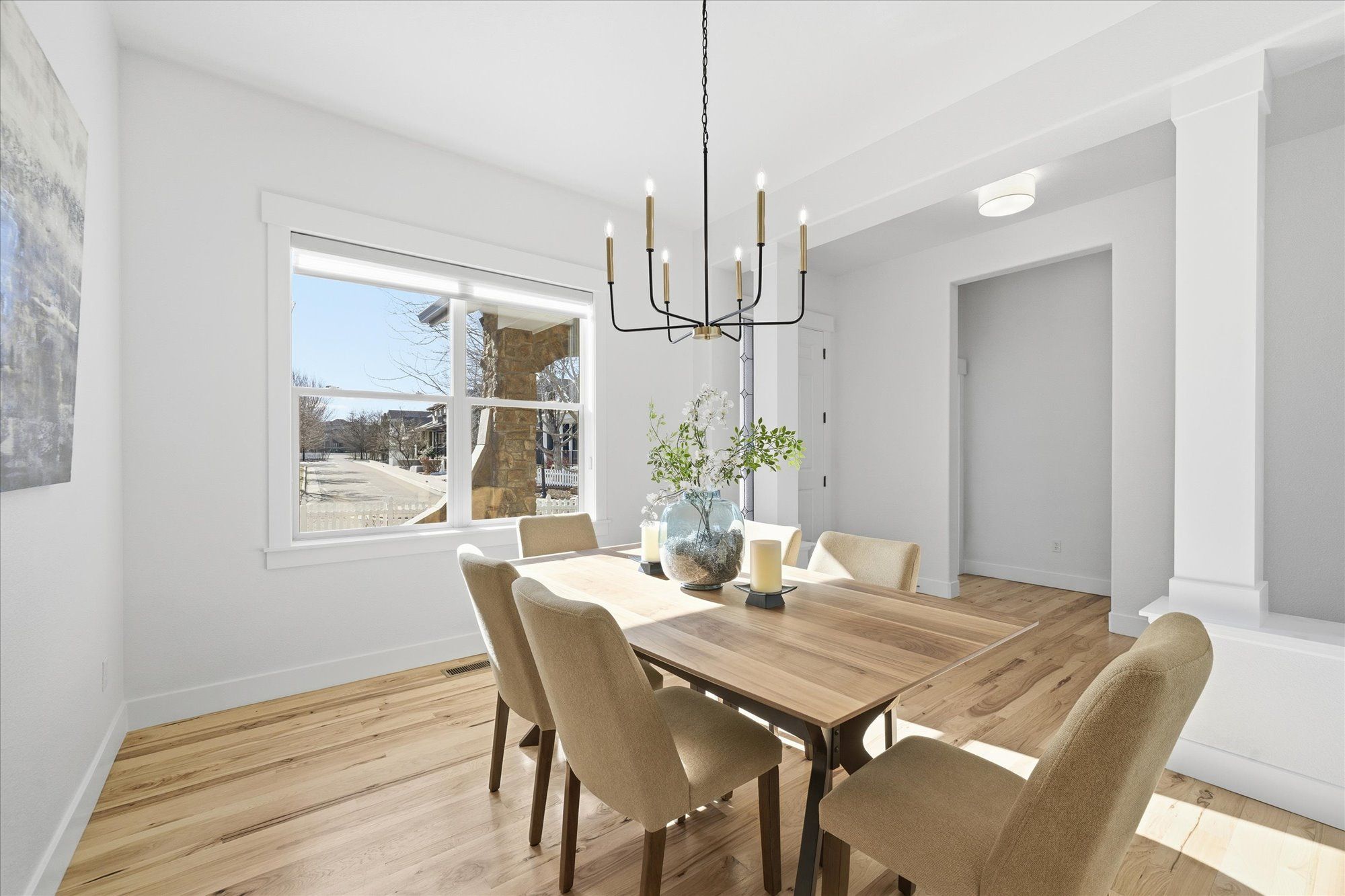 Soaring 10 foot ceilings, no stairs and flooded with wonderful natural light. Plantation shutters, stunning hickory hardwood floors, living room fireplace and a wide open kitchen that overlooks it all. Formal dining room along with casual dining nook that opens to the extensive and brand new composite deck just outside