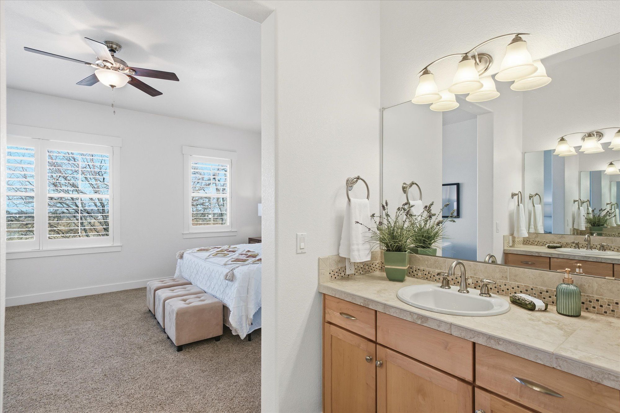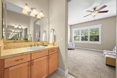 Wake up to morning sun and golf course views. Generous primary suite with 5 piece luxury bath and large walk in closet.